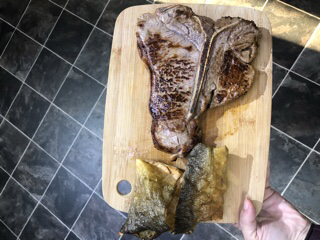 but everything was delicious! Egg yolk omelette, lamb chops, porterhouse and salmon skin, and crispy chuck roast