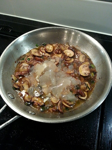 Add some bone broth (it is in gel form because it was stored in refrigerator)