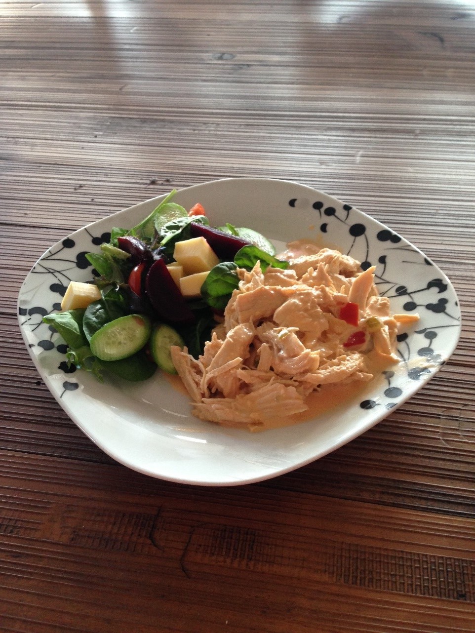 - Combine sour cream, thickened cream and salsa in a saucepan over low heat