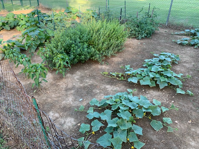 I went back and re-did the chicken wire this year, and put it on the inside, since a neighbor accidentally hooked and pulled some off when he was cutting near my fence. So this has helped keep the vegetable fur balls from getting in there, but unfortunately, I have to deal with some Squash bugs that are taking out some of my plants.