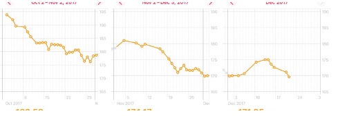 I don’t think I’ll EF again until the new year but I’m still IFing on an irregular schedule to keep my body guessing. My whole aim right now is to stay below 170 into 2018 then try to EF down to my goal of 150.