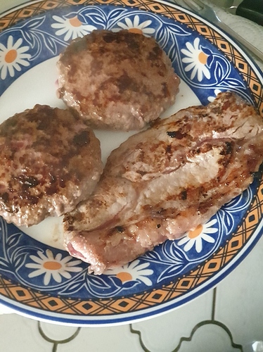 Dinner 2 beef burgers and 1 sirloin steak followed by pan fried bacon and fish pie mix (cod, haddock and salmon) you wil notice how much it looks like my bacon and hard boiled eggs mix lol. I had taken the fish mix out of the freezer to put into a omelette but going out for brunch changed the plan and there was no way i would have been able to eat an omelette after the meat dish it was all i could do to eat what i did. Had to cook the fish mix, couldn’t refreeze it and i, for sure, wasn’t going to waste it!
