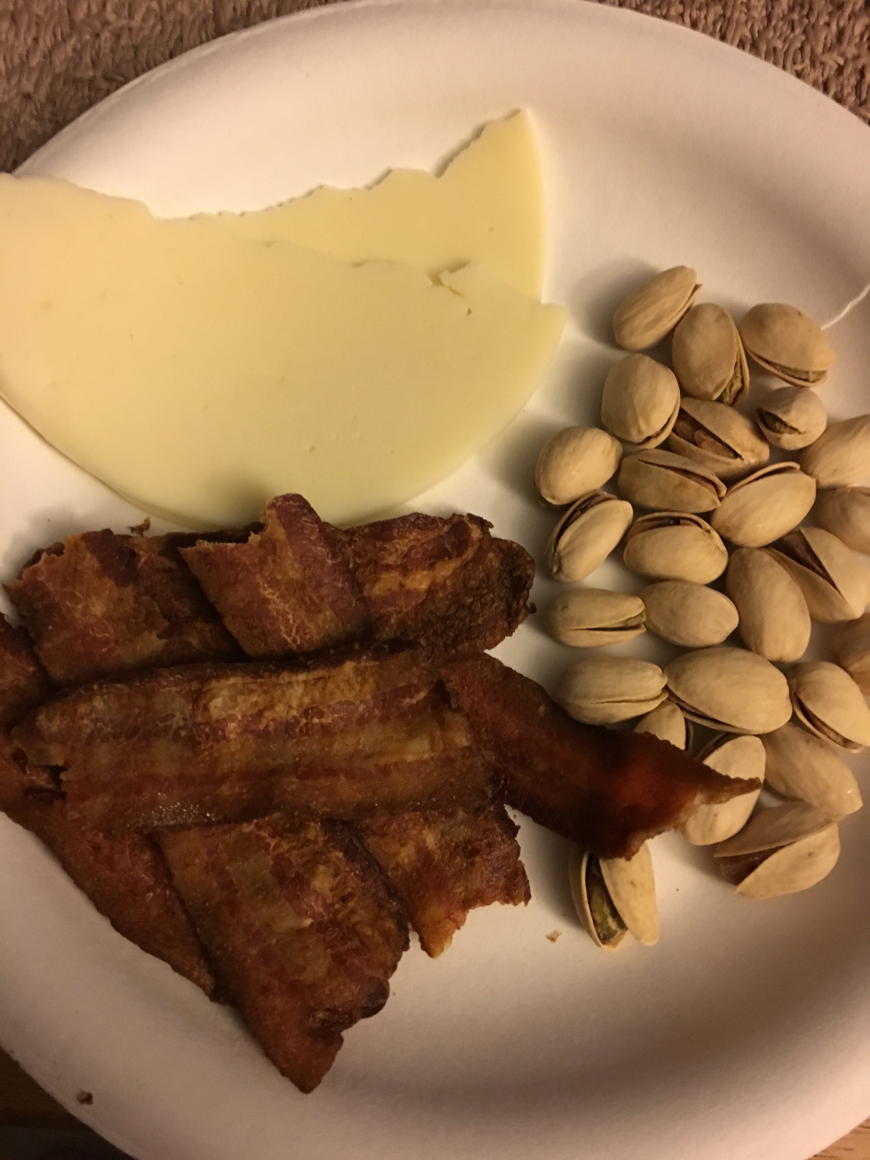 thick cut bacon, provolone, pistachios to breakā¦prob rotisserie chicken and avocado in a little while OR deviled eggs