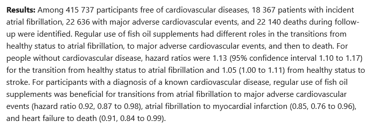 Not sure how true these are, and they don’t discuss atrial fibrillation at all. Here’s another study of the effects of fish oil: