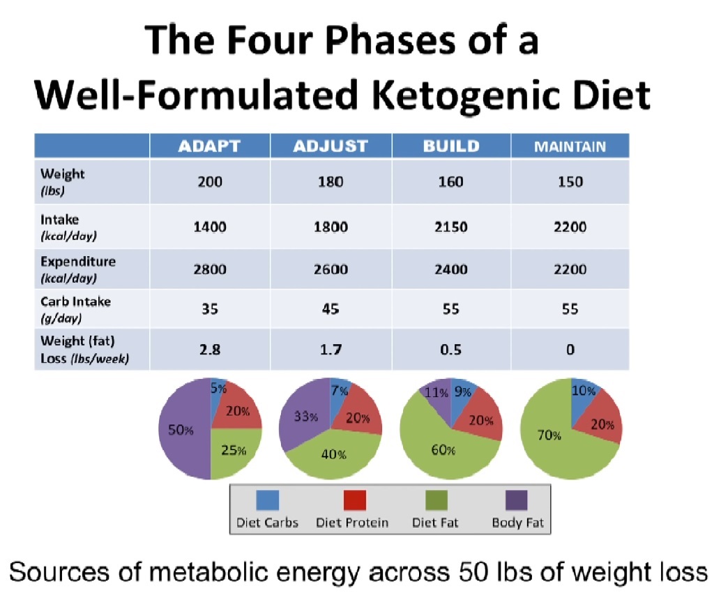 Look at the chart above - the “Adapt” stage aka the “lose fat” but not the “consume fat” stage. 1400 calories a day. Very little carbs ( I believe even less as they sneak in so many doors ) some dietary fat but… wait for it… wait for it… UNLEASH HELL! A shed load of body fat! Exactly what we want.