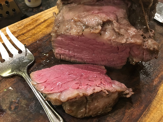 My last sous vide was a pork loin roast, about 1/3 of a big boneless pork loin I got, then cut chops from 2/3 of it.