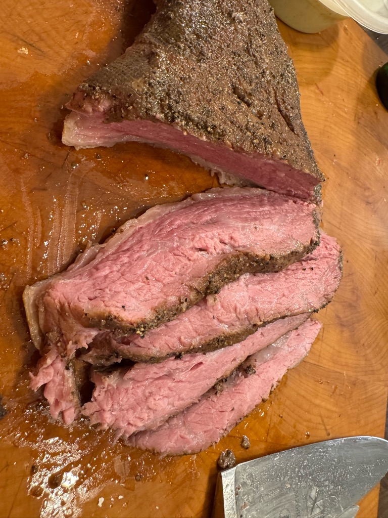 Tonight was Tri-Tip roast sous vide at 135 F for 24 hours and riced cauliflower.