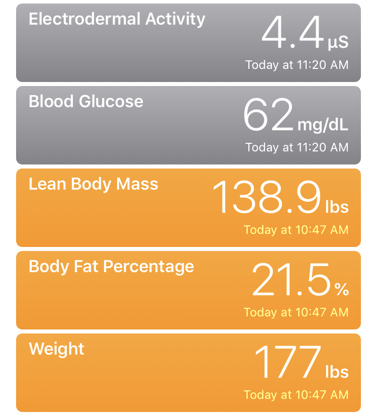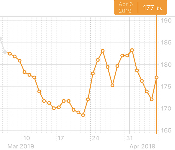 Weight went up from 172 to 178.4 (6.4lbs), then dropped with “food flux” down to 177… so a 5lb gain in water retention + refeed effect (glycogen, muscle, fat) and 1.4lb of flow through from last night’s meal alone.