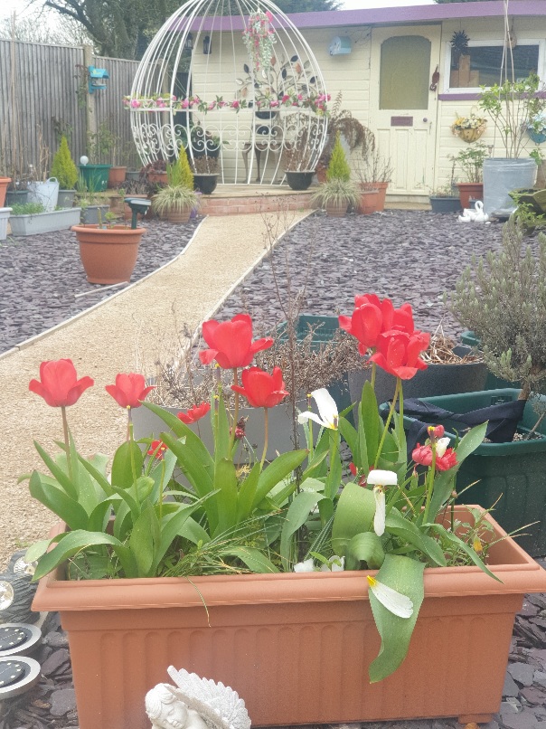 I was exhausted by the time i went to bed but had a fairly reasonable sleep … by my standards lol. Up early before 7 and stair running before coffee and books in the garden then out to CrossFit. Great workout today and now sitting again in the garden … really must get on to weed the rest of my pots!