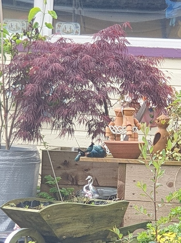 Up just prior to 7.30am alarm this morning. Stair runs done, meds, BP and into the garden with books and black coffee. Plants are coming back nicely, just weeded them and disturbed the soil and it is nice to see my acer with all the leaves back and flourishing well. I only bubblewrapped the stem of this one in the pic. The rhododendrums are blooming … this one bloomed before the other one (not photo’d) last year and has done so again this year although the other one has buds that are beginning to open.