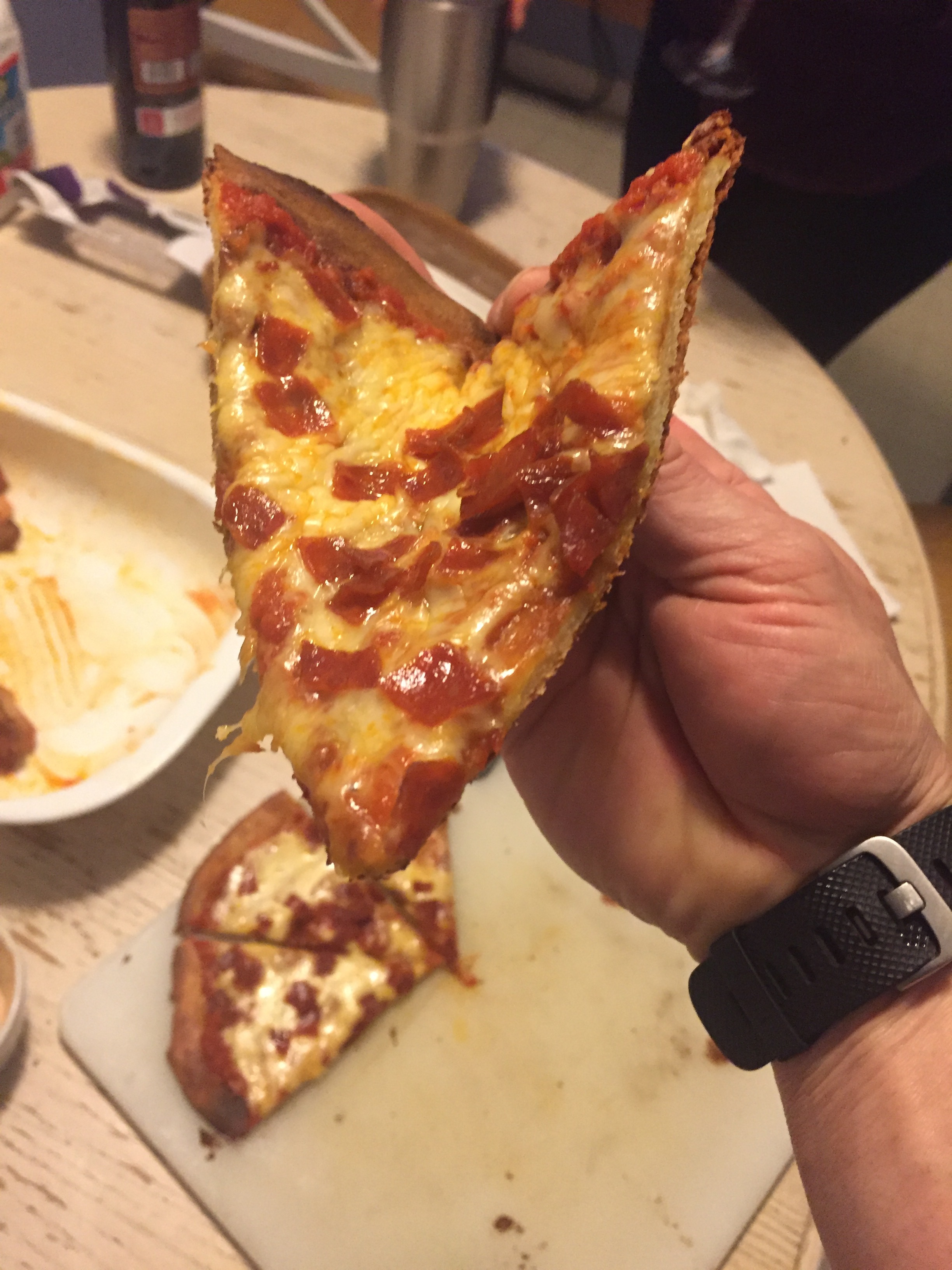 When I started making fathead pizza crusts 3 years ago, I started flipping to cook the crust more thoroughly(not in the original fathead instructions) and posted about it often.