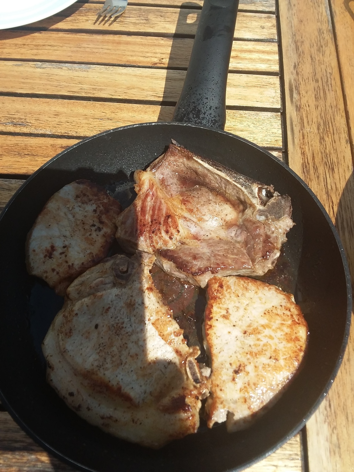 Dinner a rump steak which I over-cooked for my liking. Didn’t think I had left it in the pan for that long, some lamb chops bits and a couple of slices of smoked bacon which was nice. It’s amazing how different the steak tastes the longer you cook it … I think the longer it’s cooked the more the meat loses it’s flavour.