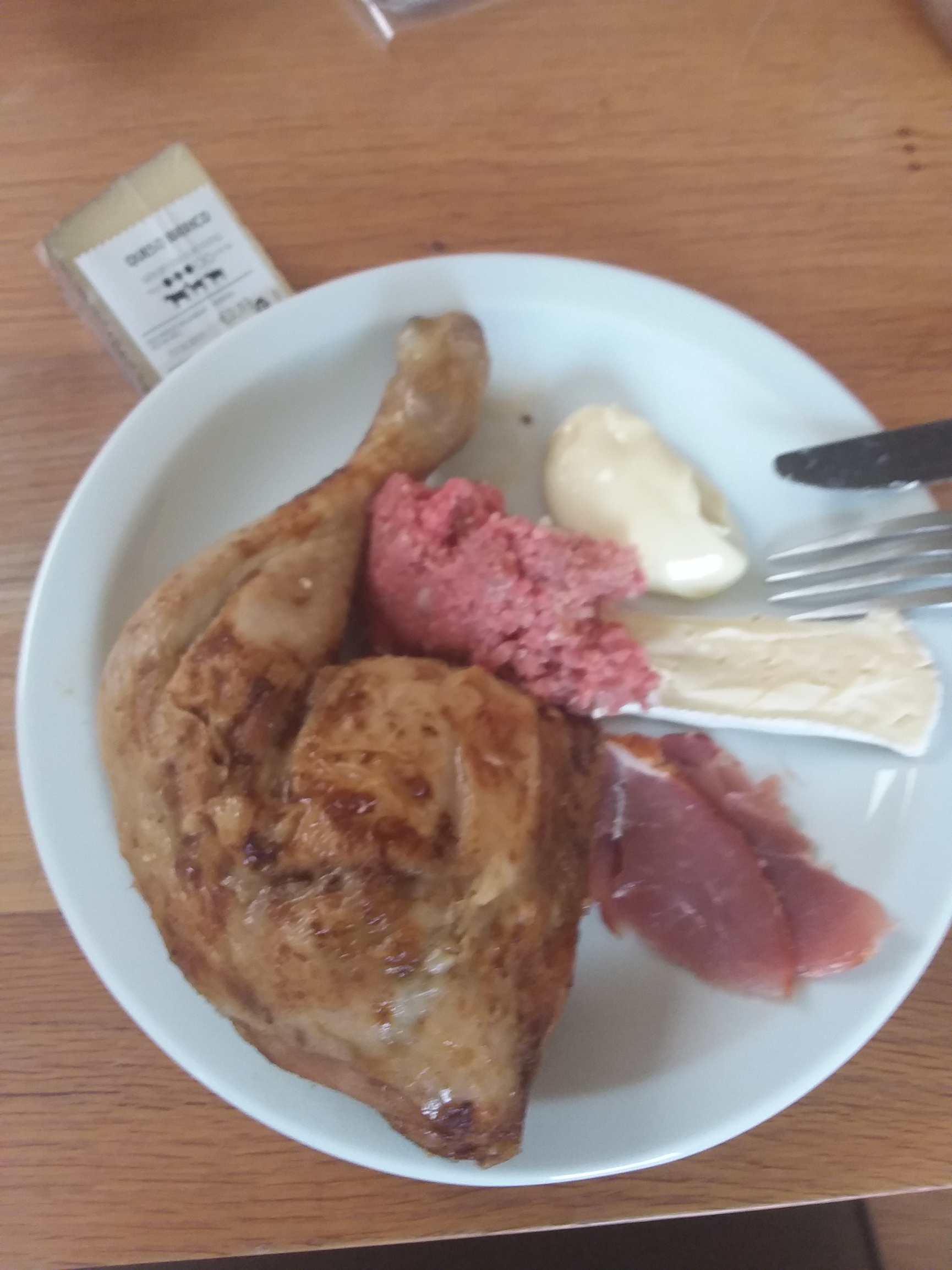 But as I have so many things to eat now, it was enough. I got unusually many calories (both protein and fat and of course, some carbs) from dairy and I had several eggs as well. This dairy filled time won’t continue for long but I still have milk, quark, butter spread and camembert for tomorrow. The camembert was very nice with the lean meat and we only find this wonderful one in a supermarket chain we almost never visit so we grabbed 2 last time.