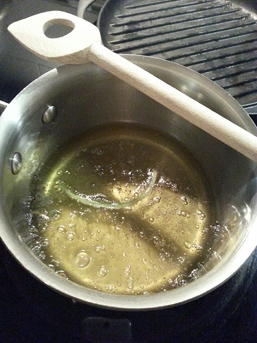 Don’t walk away from hot oil. You need to stay there in attendance until the leeks are done (6 to 15 minutes) depending on temperature of oil