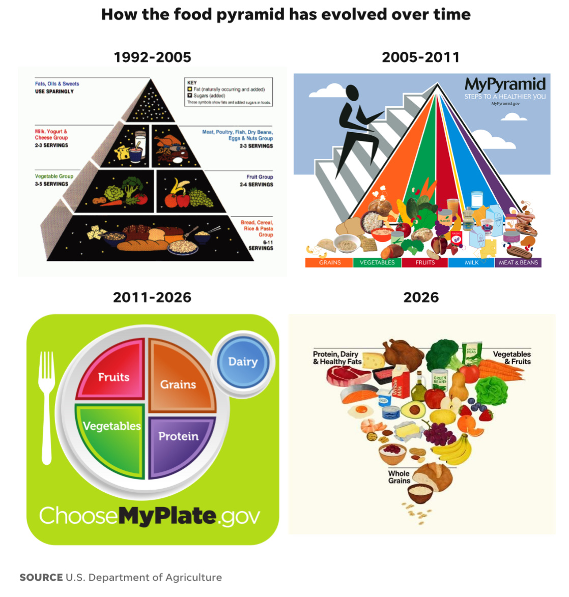I haven’t paid attention to ‘guidelines’ on food consumption in decades. Not about to start now. Don’t think many people do listen to this kind of info. However if schools and other institutions must follow the new chart, then it’s going to cost a LOT more.