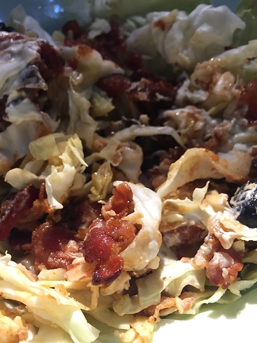 Wanted taco salad but couldnât find ground beef or pork. (I know I can get it done at the wet market. I need to learn the vocabulary to get that done. 9 years in China, but with a vegetarian vocabulary.) Anyway, I said to myself, âWhy not bacon?â I had no answer to that question. So I cut the raw bacon into smallish pieces and cooked then in my shiney new ceramic casserole pot with cumin, coriander and chili powder. It. Was. Yummy.