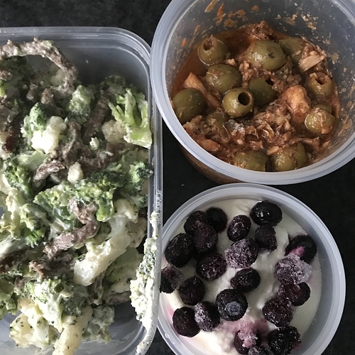 ), and sardines (in tomato sauce as I’d rather that than rancid oil of some sort) mixed with green olives and an extra 20g EVOO.