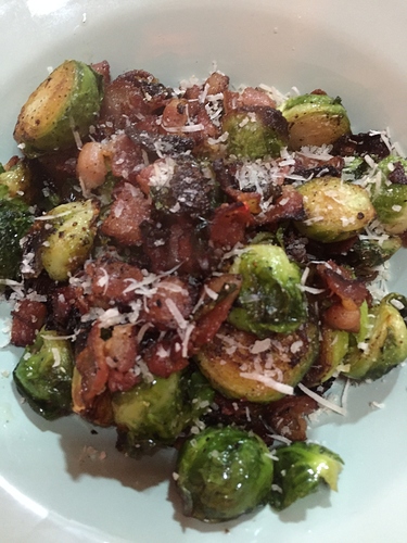 First time cooking them ever. Cooked with the bacon together. Not as good as the sprouts my cousin’s wife made for me 10(?) years ago. But not shabby for a first go.