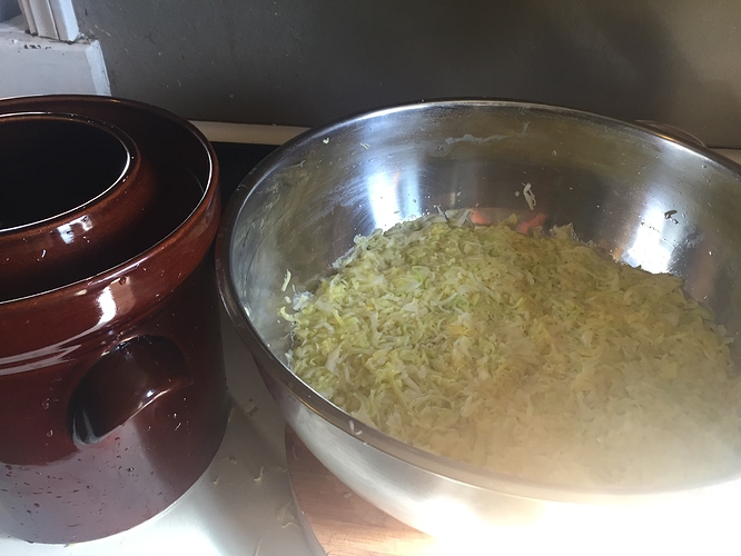 I started an 8# batch of sauerkraut today flavored with fennel and coriander seeds, and black peppercorns.