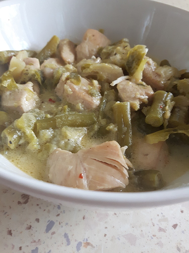 My so far favorite - brussel sprouts, green beans and chicken with good, fatty sourcream sauce.