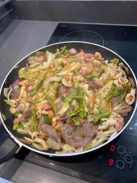 Not really hungry after brunch earlier, but I think I will (rather than eat more sausages) go for sirloin (only thing i have), mushrooms, a pepper and asparagus tonight.