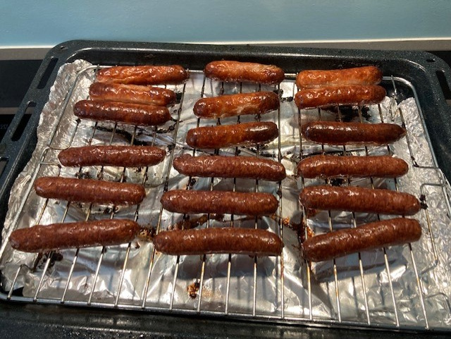 Leftover, refrigerated sausages. Carly may get the most of them now…I share most meals with her anyway.