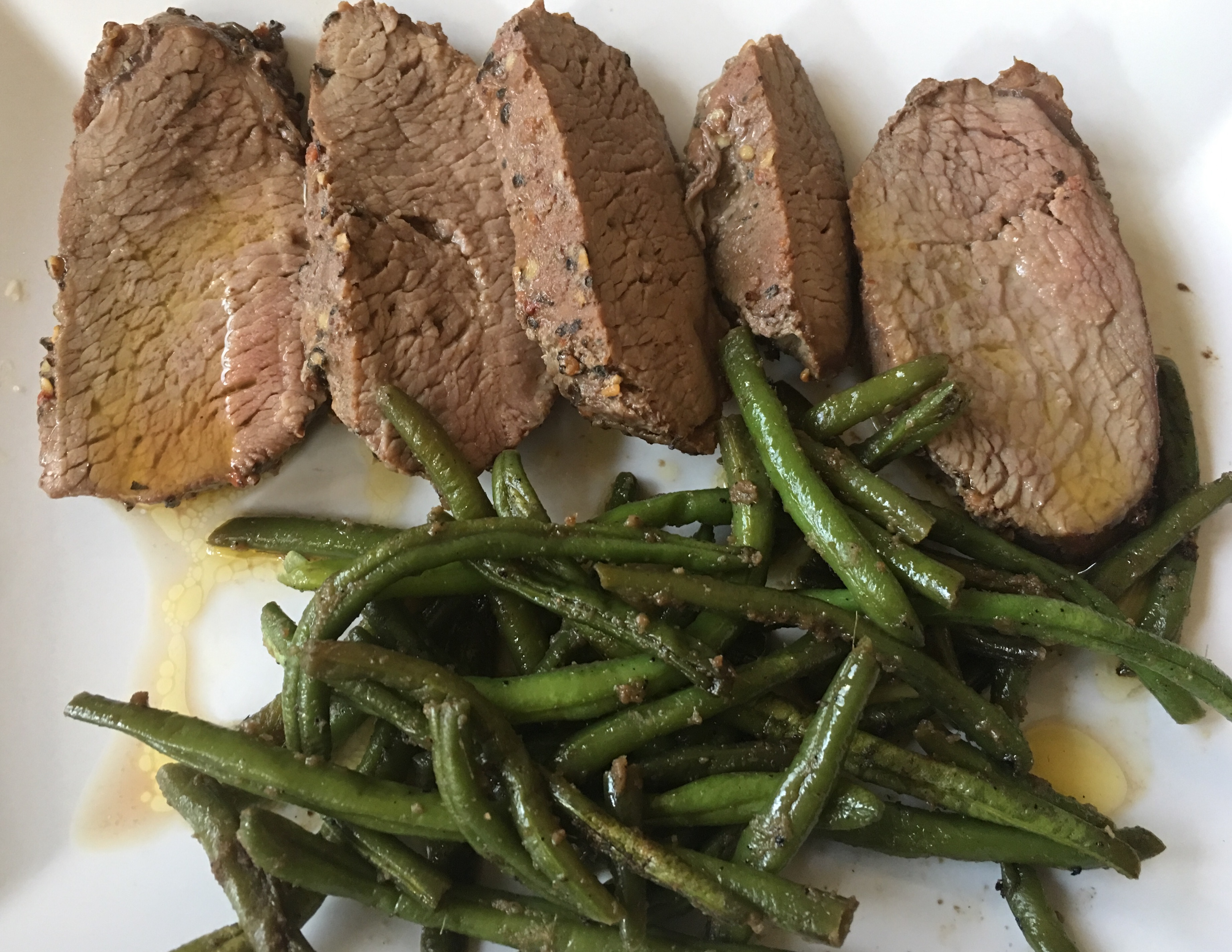 Made beef loin and leftover green beans and salad from last night. Stuffed!