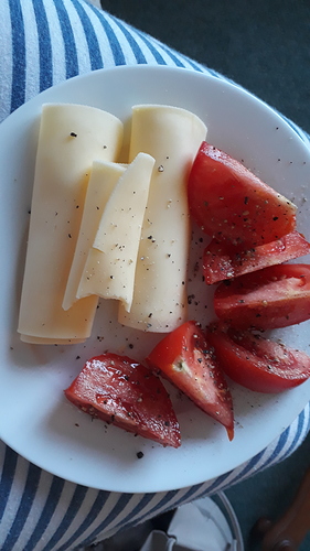 Takeout from a local pizza joint. Taco salad I ask them from no tortilla shell or tomatoes since I ask for salsa and double meat!