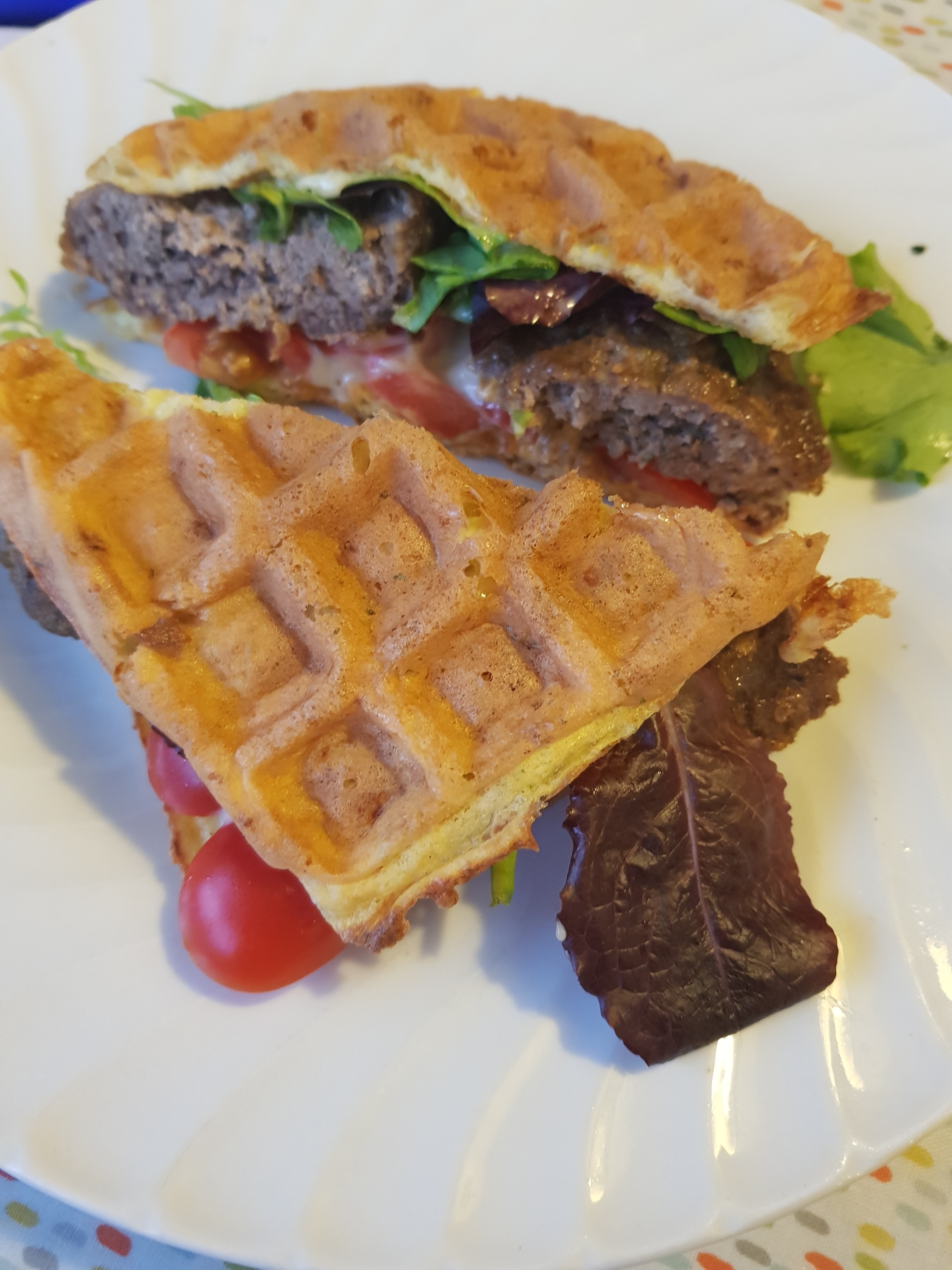 Lamb burger chafflewich! this brought me great joy! Loved the fact that I could pick this up and eat it like a burger/sandwich. I even went mad and made some mayo to go in it!