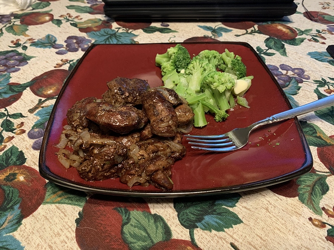 Dinner… Chicken Liver with Onions with Broccoli and Butter