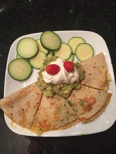 You know you’re Keto when you mix Kerrygold butter into your guacamole on top of your low-carb quesadillas with zucchini “chips”.