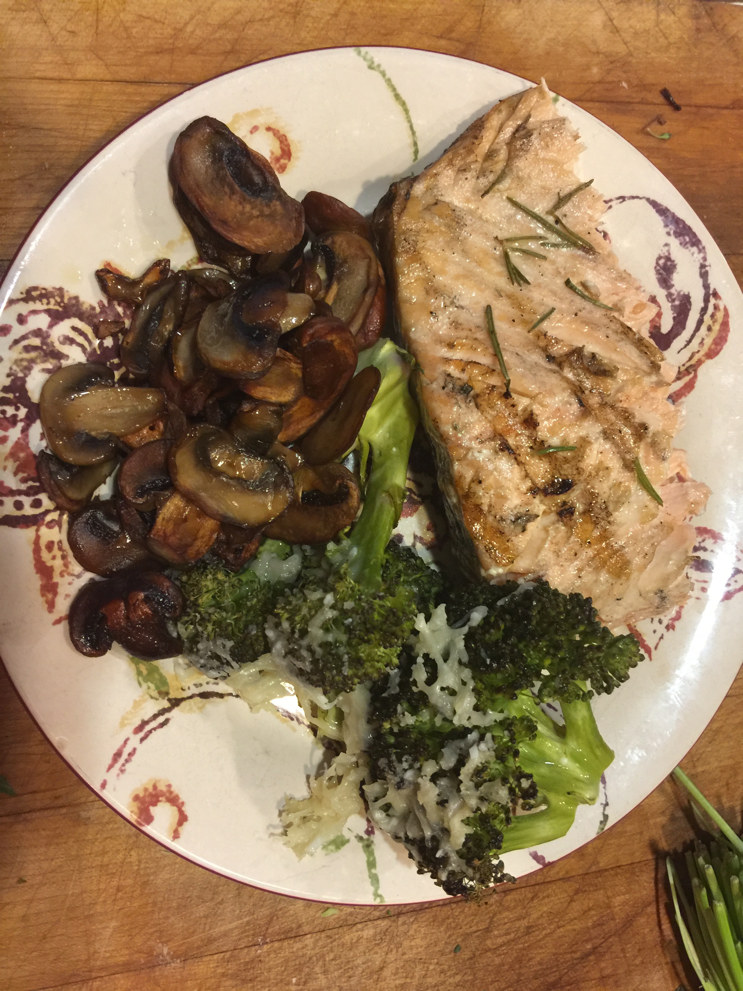 This morning I had two of Brenda Zorn’s famous pork rind pancakes smothered in butter, lunch was left over buffalo turkey fathead pizza, and dinner was almond flour dusted and fried flounder with a mixed green salad and homemade ranch dressing. I love Keto meals!