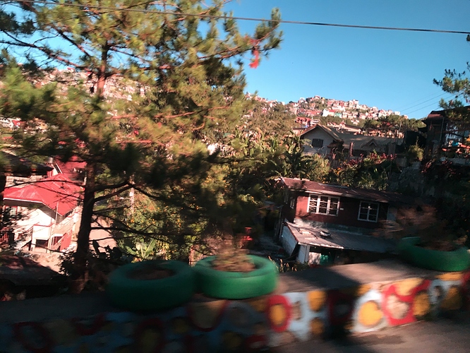 Millions of people living their lives down there. Beautiful, peaceful and sparkling from above. Loud, busy and dirty at level. (My Chinese friends commented how clean the streets are in the Philippines. I noticed how clean, and pretty, the bathrooms are. Even highway rest stop bathrooms were clean with nice art on the walls.) But I’m happy in my gritty city, too.