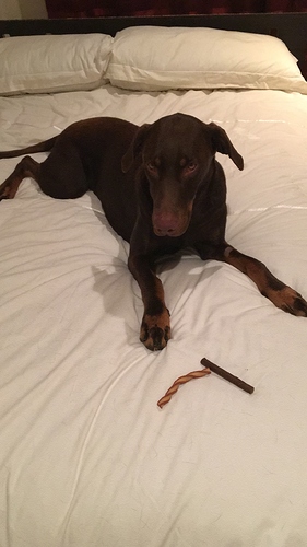 A younger Carly, my 4.3 Doberdor (half chocalte brown Doberman and half chocolate brown Labrador).